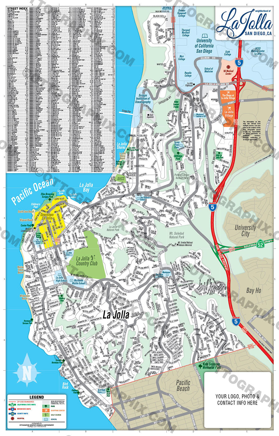 La Jolla Map with Street Index, San Diego County, CA โ Otto Maps