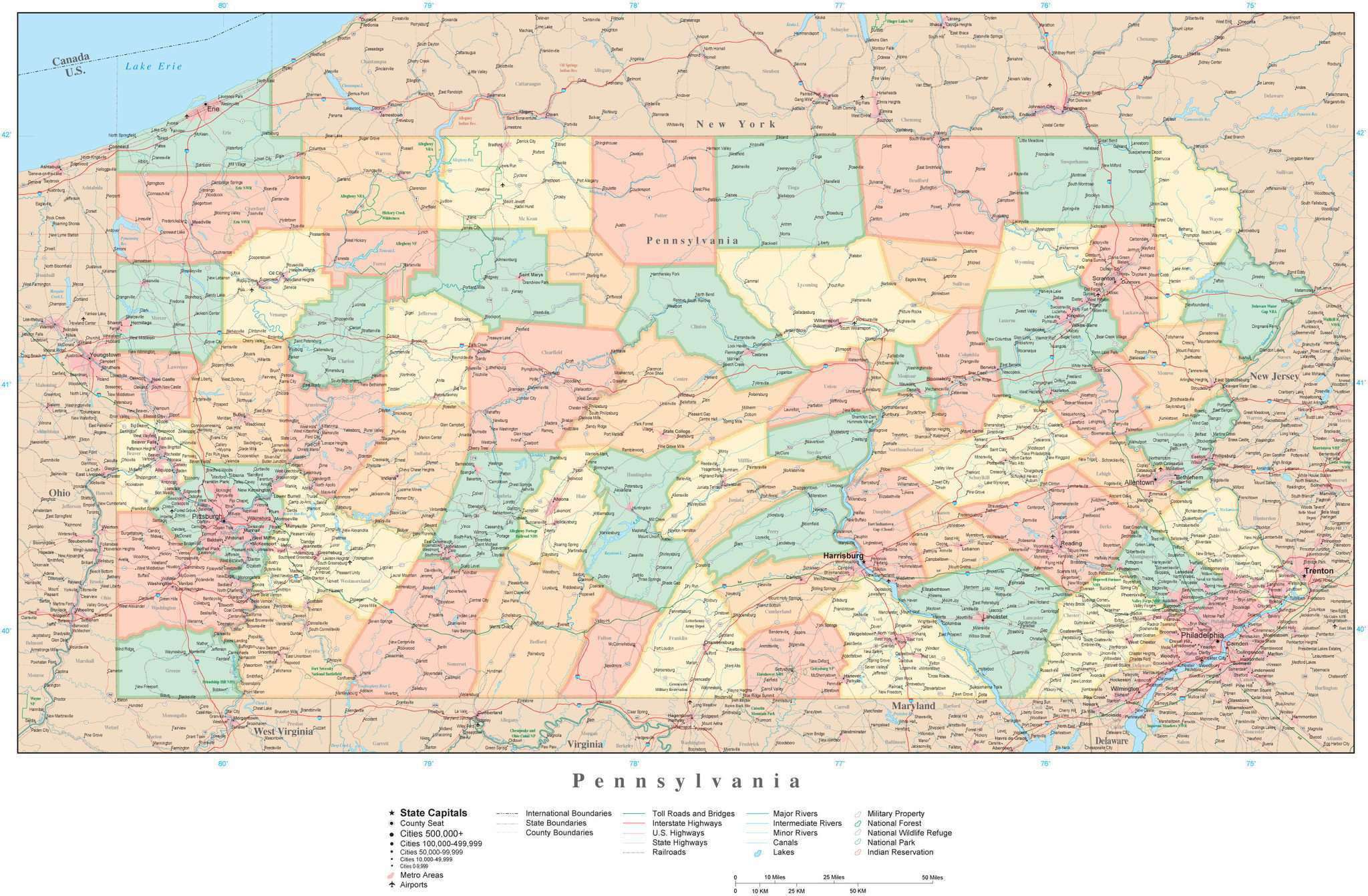 Pennsylvania State Map in Adobe Illustrator Vector Format