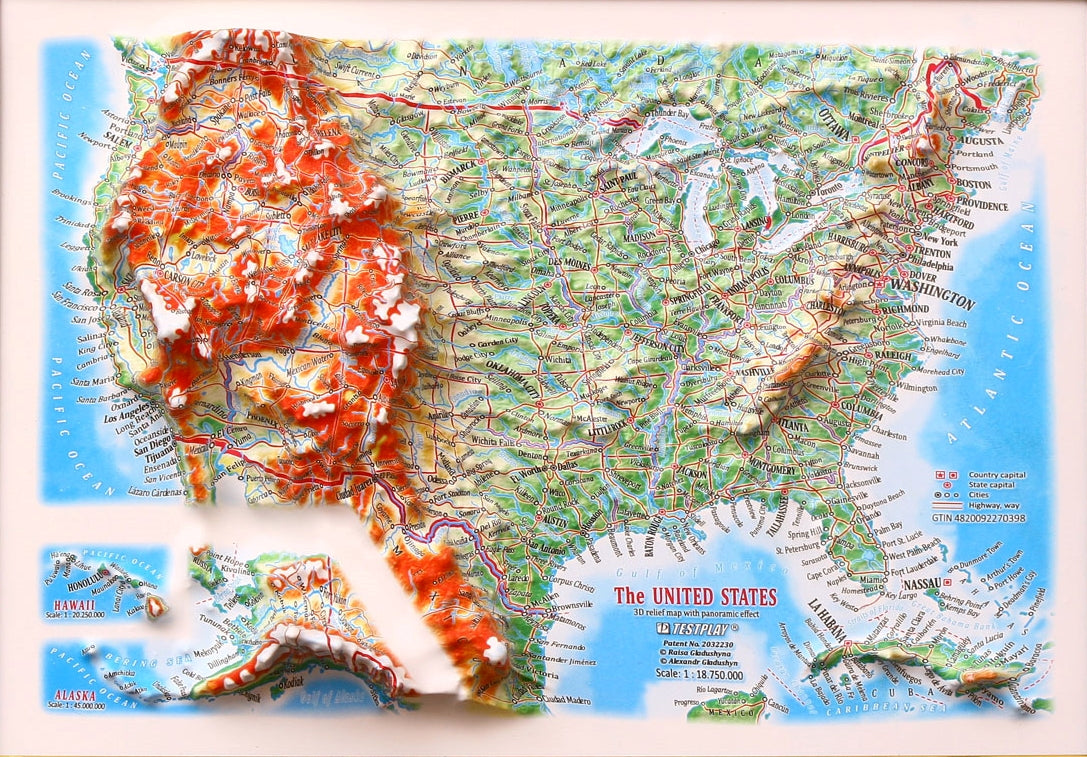 United States 3D Raised Relief Map Gift size 12 inch x 9 inch