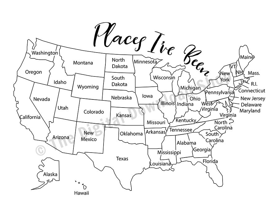 Places I’ve Been Map Coloring Page Printable | The Digital