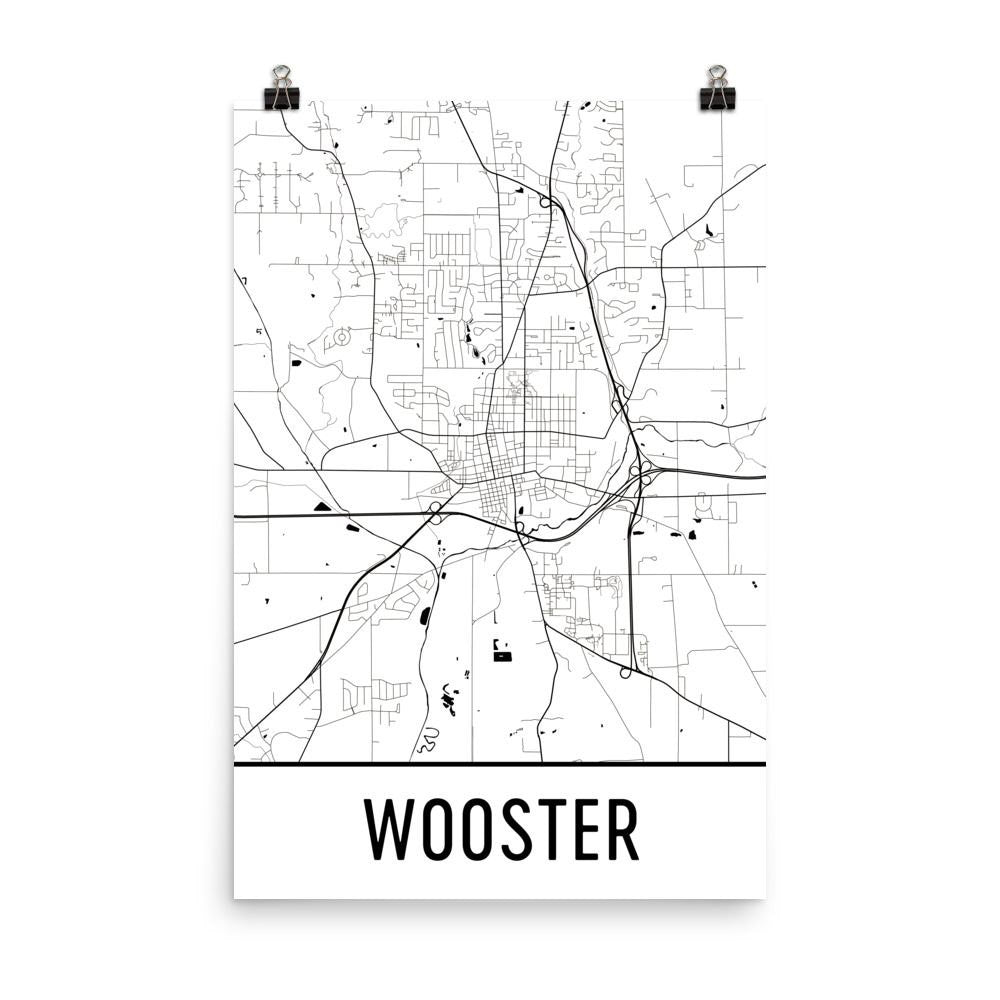 Wooster OH Street Map Poster Wall Print by Modern Map Art
